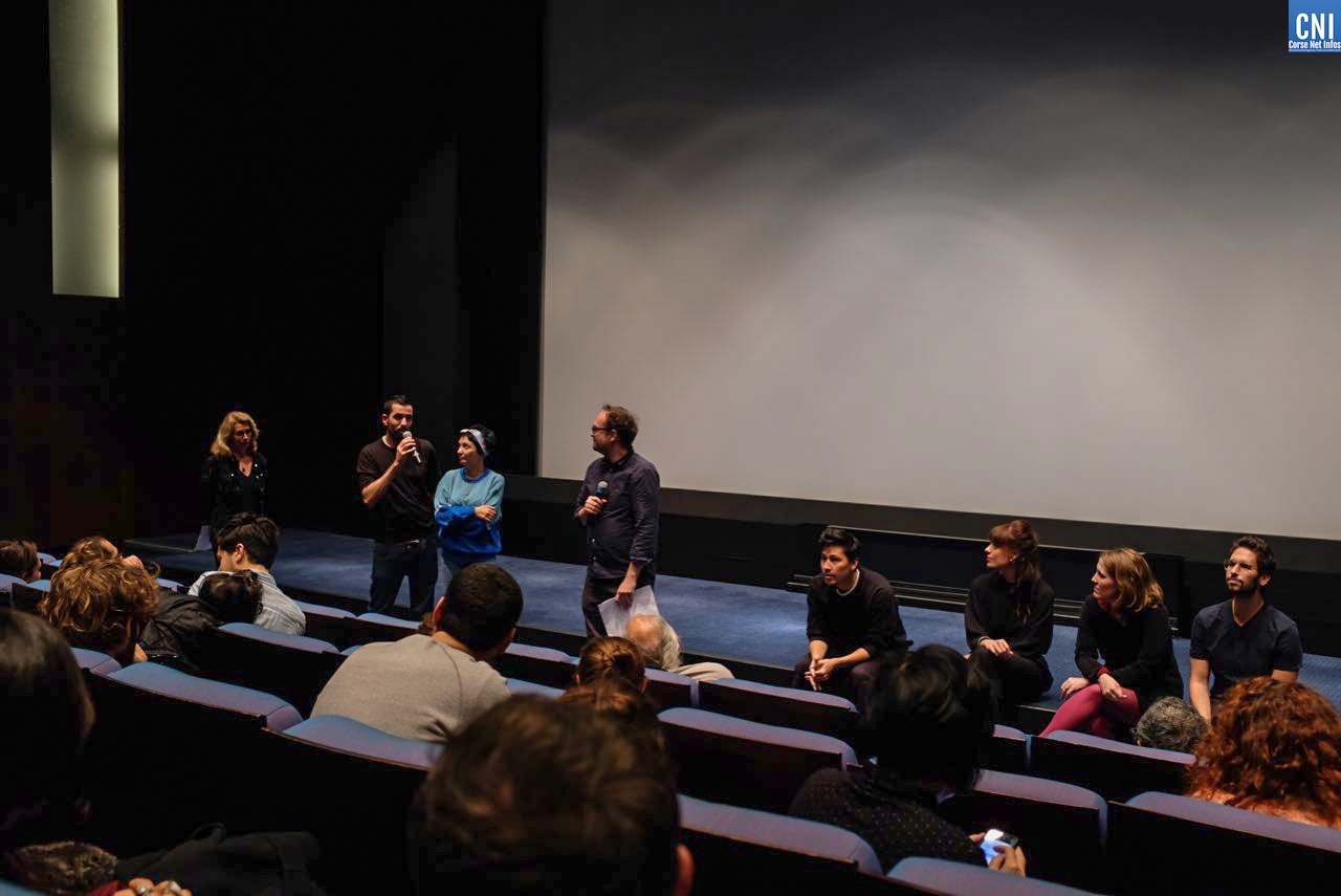 Parmi cette sélection hétéroclite d’un soir, avec des films traditionnels et d’animation, était projeté Féeroce, le deuxième court métrage de Fabien Ara, très récemment récompensé au Festival Arte Mare de Bastia. Le jeune acteur/réalisateur (lire ci-dessous) était bien accompagné pour l’occasion. A ses côtés, trois de ses acteurs, Capucine Lespinas, Marie-Pierre Nouveau et Nathanaël Maïni mais aussi sa productrice Amélie Quéret. Un film corse ne passant jamais inaperçu, c’est également Léonard Accorsi qui est venu en voisin parisien. Le jeune réalisateur vient de tourner Gasoil, son deuxième film après Feriti en 2017. Au casting de ce court-métrage, on retrouve…Marie-Pierre Nouveau mais aussi le musicien Nicolas Paoletti (Casablanca Drivers). Laurent Hérin, le coordinateur du Festival du film de Lama était également présent à cette projection.