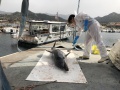 " C’est une femelle dauphin bleu et blanc, qui mesure 1,89 m. Ce qui veut dire que c’est une subadulte. Elle est arrivée ici en piteux état. Elle a été découverte aux alentours de 12h30. Elle tournait et semblait très désorientée, ce qui est le comportement d’un animal en fin de vie" explique Cathy Cesarini.