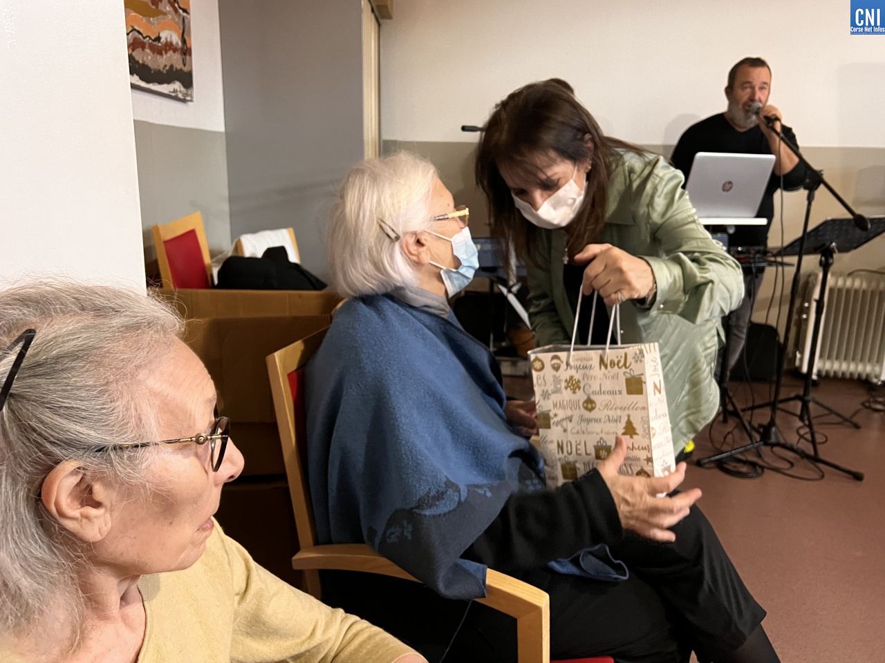 À cette occasion, Hélène Astolfi, présidente du CCAS et adjointe en charge notamment des Affaires sociales, des Solidarités et des Personnes âgées, a remis a chacun, et toujours avec un petit mot gentil et beaucoup d’affection, son cadeau personnalisé. "Chaque fin d’année, le Ccas de Calvi, conjointement avec la direction de l’établissement de santé, souhaite pour les fêtes de fin d’année, offrir un goûter de Noël aux résidents du long séjour. Et je souhaite, depuis que je suis élue m’en charger. C’est un moment important pour eux. Certains n’ont plus personne. Alors nous préparons des présents personnalisés, pour ceux notamment qui ont besoin de certains produits de beauté. Et ils sont différents pour les hommes et les femmes".