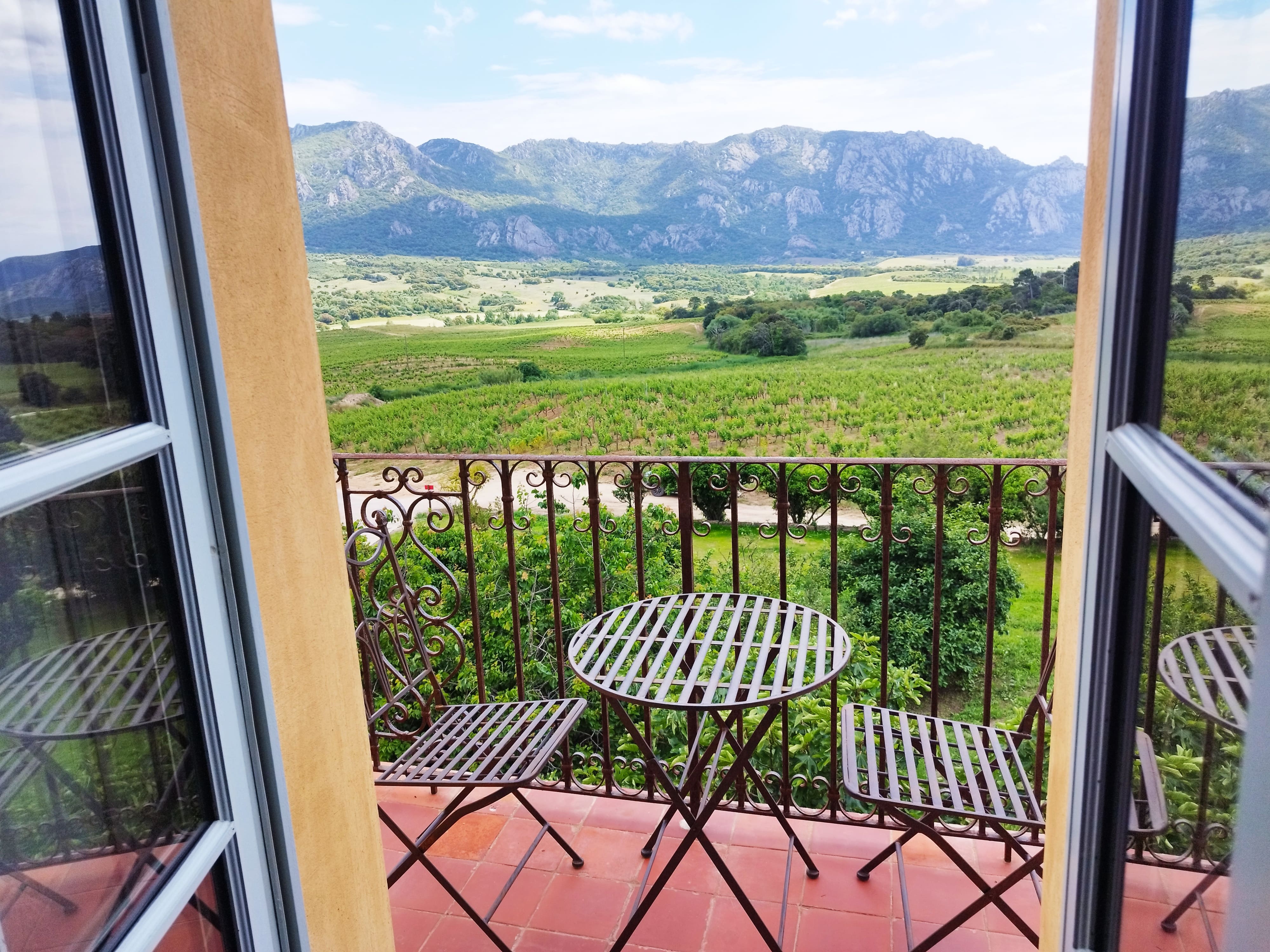 Un bâtiment, le plus grand de tous, rappelle la Sicile avec son crépi jauni. Pas du tout, corrige Julie Farinelli : « Auparavant en Corse, les maisons de maître étaient enduites de chaux. C’était signe de richesse. » Le bâtiment en question, c’était la demeure de Philippe De Rocca Serra, dont les armoiries s’affichent toujours sur le fronton. Elle est flanquée d’une tour, « construite après coup pour que les servants desservent la cuisine sans passer par l’escalier principal, qui était réservé au propriétaire », explique la Sartenaise. D’où le nom « Casteddu », l’une des cuvées les plus réputées du domaine de Saparale. C’est ce batiment qui a nécessité trois ans et demi de travaux. Ses successeurs en ont fait un hôtel de standing, avec seize chambres et suites. La porte d’entrée en fer forgée ouvre sur une verrière immense. Dans les chambres, dont certaines avec vue sur la vigne, le plancher en chêne côtoie la tommette d’origine. L’aménagement intérieur, c’est le domaine de Julie Farinelli : « On a voulu utiliser des matériaux anciens pour respecter l’ambiance des lieux. On n’a pas fait non plus une déco XIXe siècle, parce qu’on ne voulait pas que ça fasse poussiéreux, brocante ou vintage. L’idée, c’était de rester dans une ambiance assez intemporelle. »