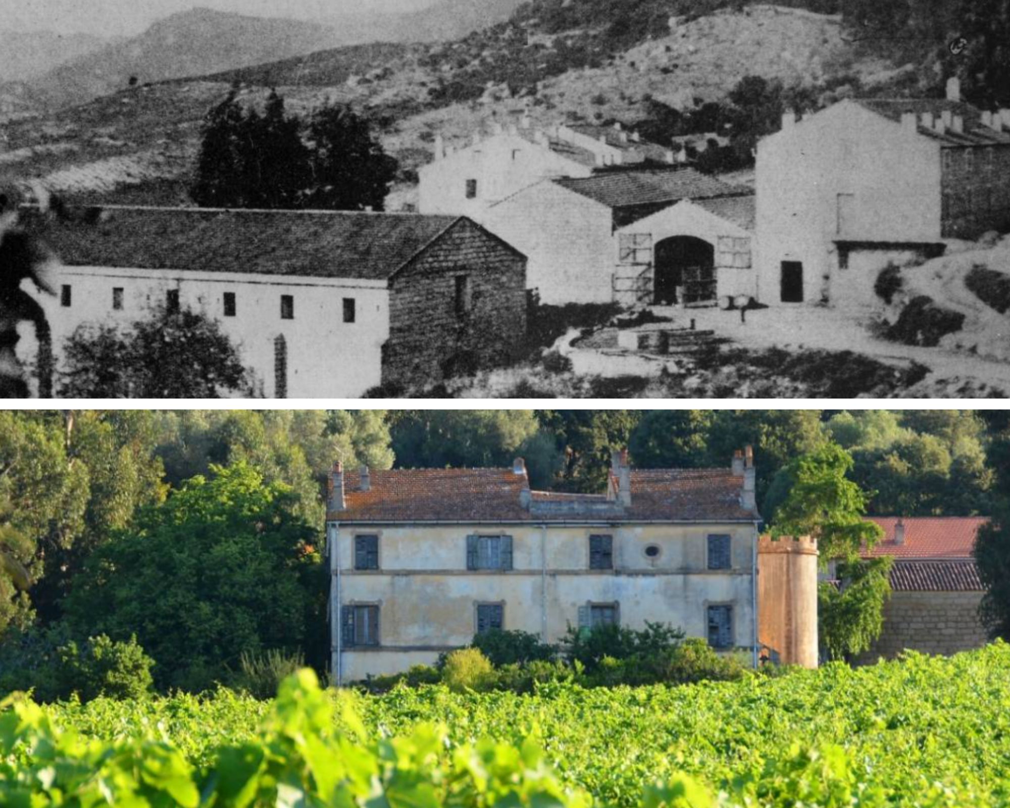 En haut : le hameau de Saparale au début du XXe siècle. En bas : la maison de maître avant sa rénovation accomplie par Julie et Philippe Farinelli. PHOTOS DOMAINE DE SAPARALE