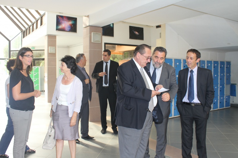 Michel Barat, Guy Monchaux, Christiane Revest en visite au collège de Baléone accompagnés d'Alexandre Sarrola, Pierre Albertini et Sophie Carbuccia