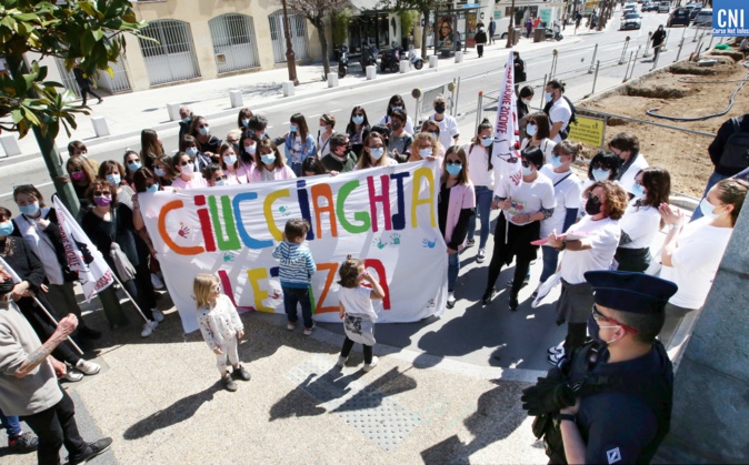 « Pas de bébés à la consigne ! » C’est le mot d’ordre de la petite centaine de personnels de plusieurs crèches, réunie ce mardi 30 mars devant la préfecture d’Ajaccio. En grève, ils protestent contre un projet de réforme national porté par Adrien Taquet, secrétaire d’Etat chargé de l’enfance et des familles.