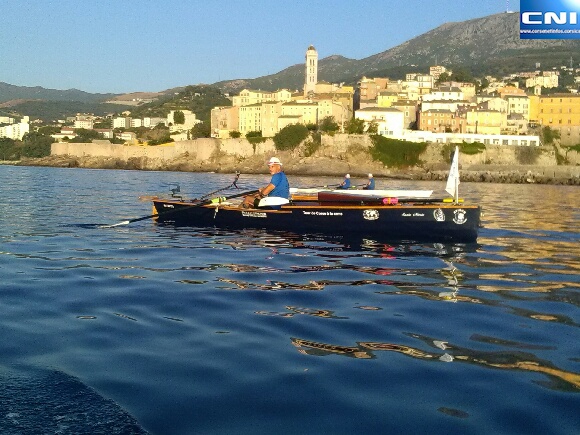 A bord de son embarcation, la "Santa Maria", il a pris la direction du Cap-Corse pour ce tour de Corse à la rame.