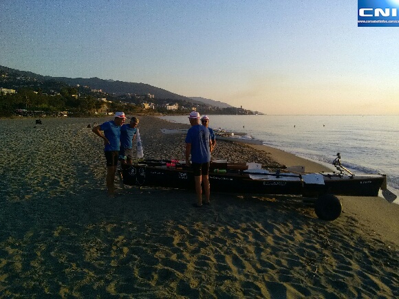 Il était près de 18 heures lorsque nous avons réussi à joindre par téléphone le rameur qui nous confiait qu'il était confronté à des vents contraires et qu'il lui faudrait environ 2 heures pour rejoindre Centuri, terme de cette première étape.