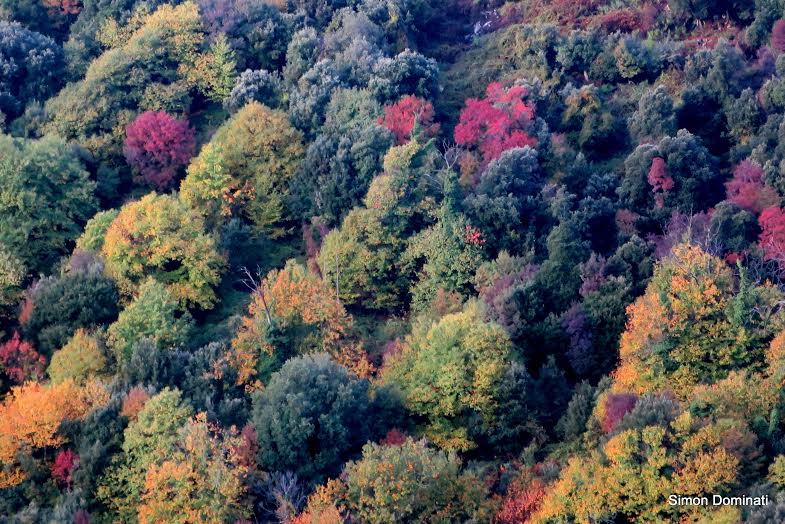 Avant le départ de l’automne peintre, avant qu’il ne range ses pinceaux pour laisser la place à la toile grise ou blanche de l’hiver, voici quelques clichés au soleil levant. Juste avant que le voile nuageux ne vienne ternir les couleurs lumineuses, la colline de Cirana à Lévie se fait pinacothèque impressionniste de plein air. Le soleil rasant était à l’ouvrage, il fallait faire vite, voyez ces merveilles.