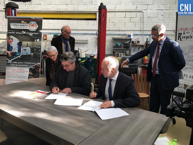 Dans la continuité a eu lieu la signature d'une convention de partenariat entre le Pôle Emploi de Corse représenté par son directeur régional Pierre Peladan et Corse Mobilité Solidaire représenté par son président Joseph Emmanuelli.
