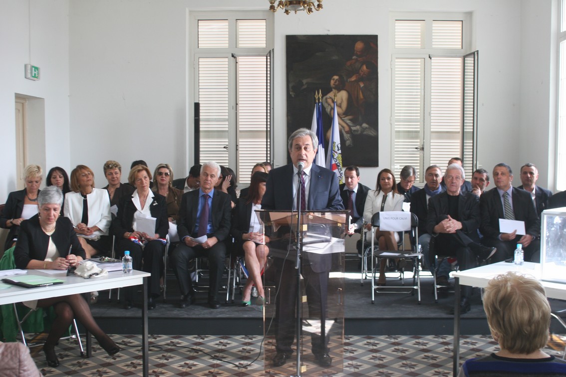 Ambiance des grands jours ce dimanche matin dans la salle des fêtes de l’hôtel de ville de Calvi où à 11 heures, le conseil municipal, élu le dimanche 23 mars, était convoqué pour procéder à l’élection du maire et des adjoints.