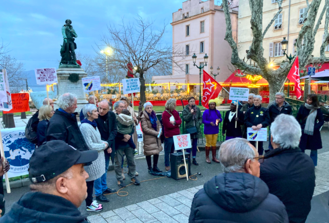 A Ajaccio, à l'appel de l ’association Per a Pace et du Mouvement de la Paix, une trentaine de personnes s'étaient données rendez-vous en fin de journée sur la place Abbatucci pour dire stop à la guerre en Ukraine mais aussi à tous les autres conflits d'ailleurs. "L’occasion, explique l'association, de rappeler au Président Macron que nous sommes opposés à la prochaine loi de programmation militaire qui prévoit une dépense faramineuse de 413 milliards d’euros sur la période 2024 -2030."