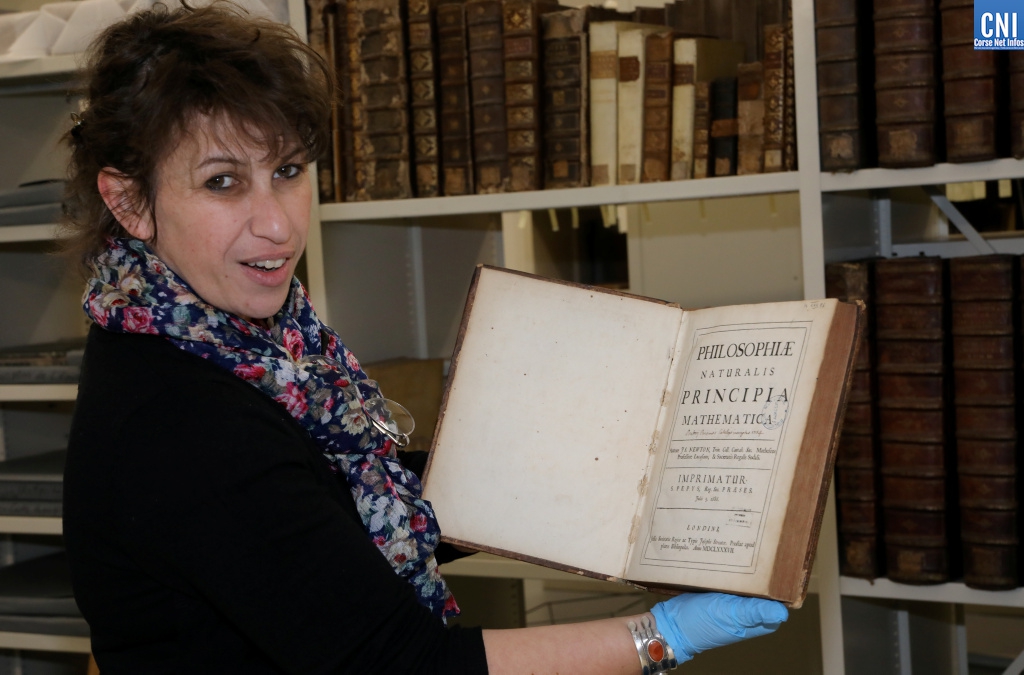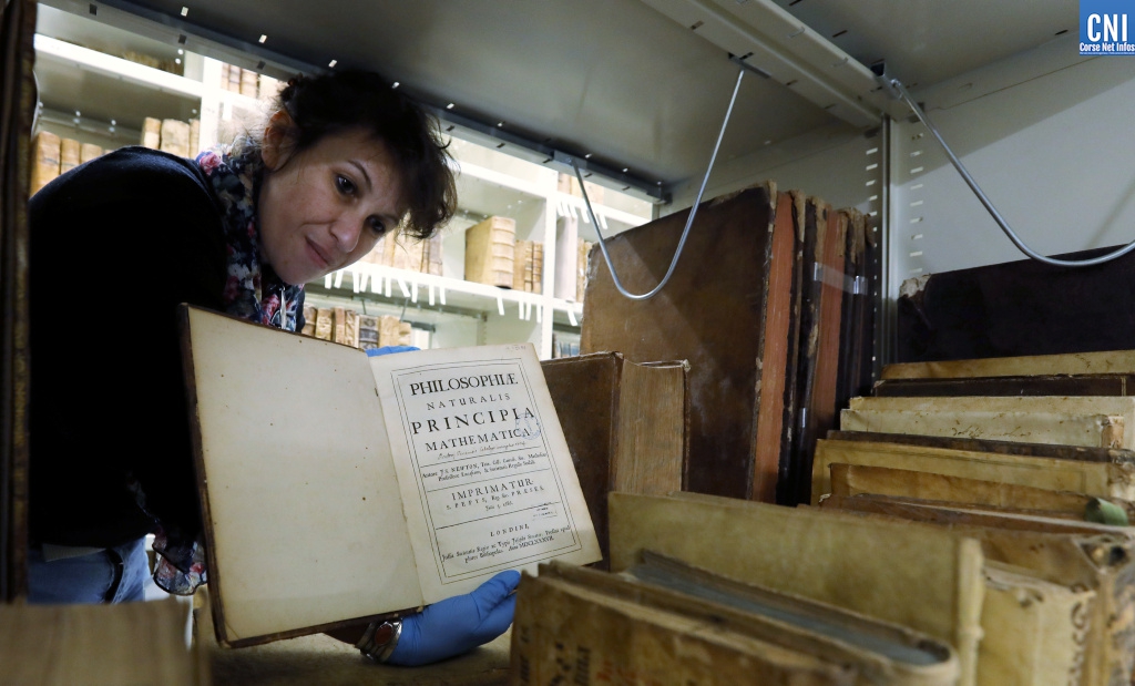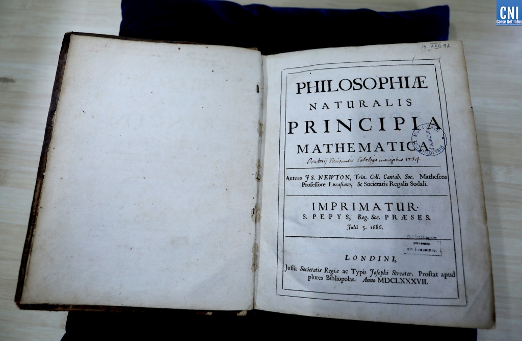 C’est ce lundi 3 mars que Vannina-Vassilia Schirinsky-Schikhmatoff, responsable à la conservation et à la restauration de la Bibliothèque Patrimoniale Fesch a fait cette incroyable découverte, au hasard de ses recherches dans la salle patrimoniale : « Philosophia Naturalis Principia Mathematica » (principes mathématiques de la philosophie naturelle), un ouvrage d’Isaac Newton paru en 1687.