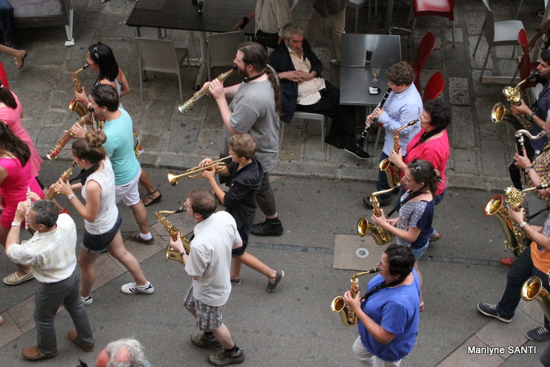 Une parade a créé la surprise vendredi soir rue Fesch. Une quarantaine de musicien sont soudain apparus offrant une musique plutôt rythmée. Il s’agissait de la Master classe de l'ensemble Hélianthe avec les élèves du conservatoire Henri Tomasi. Un grand merci aussi à Ghislaine Koenig, dynamique professeure de saxophone pour avoir offert ce beau moment.