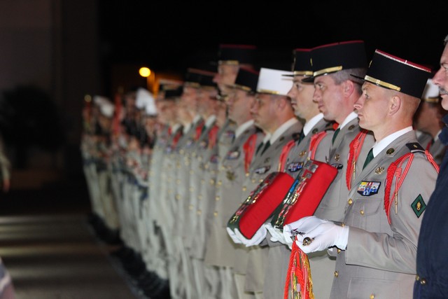 Les décorés regagnaient les rangs avant que le colonel Meunier, face à la 5e compagnie de combat au garde à vous, ne prononce la phrase traditionnelle: «Officiers, sous-officiers, hommes du rang, de par le président de la République, vous reconnaîtrez désormais pour votre chef le capitaine Buffeteau ici présent et vous lui obéirez en tout ce qu’il vous commandera pour le bien du service, l’exécution des règlements militaires, l’observation des lois et le succès des armes de la France» .