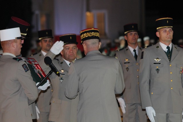 Le Général Bosser faisait chevalier de l'Ordre National du Mérite le Major Jean Rodet Loew qui fera ses adieux aux armes au mois de juillet prochain avec 39 ans de service! Il remettait ensuite la Croix de la valeur militaire avec étoile d'argent au lieutenant Henrys d'Aubigny et au sergent chef Armand Lhorme, la Croix de la valeur militaire avec étoile de bronze au sergent chef Romain Svoboda et au sergent Robert Racescu, sergent Tristan Gerbier, caporal Thomas Steele, sergent Andrei Rusu et sergent Smilzan Bule.