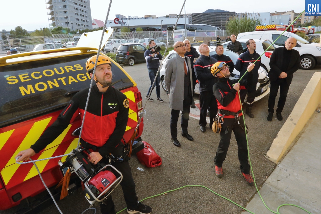 Le poste de commandement mobile et les équipes spécialisées lui ont été présentées (secours nautique, secours montagne, risques technologiques). Divers exercices ont également été présentés, notamment une manoeuvre feux de forêt.