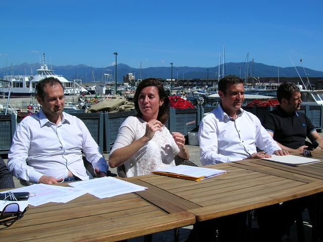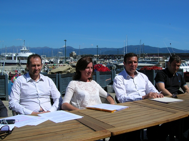 Jean-Martin Mondoloni, Marie-Antoinette Santoni-Brunelli et les membres du mouvement "Une nouvelle Corse" jeudi après-midi à Ajaccio. (Photos : Yannis-Christophe Garcia)