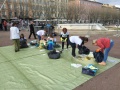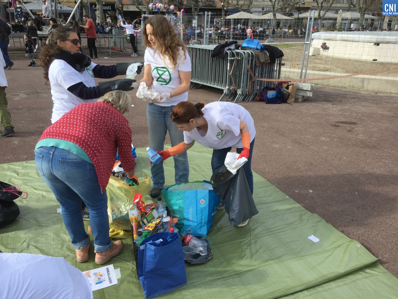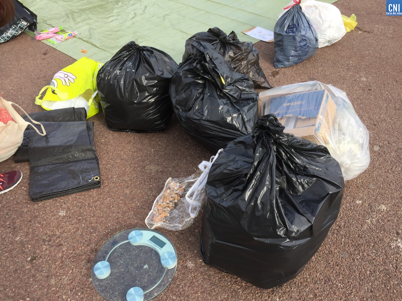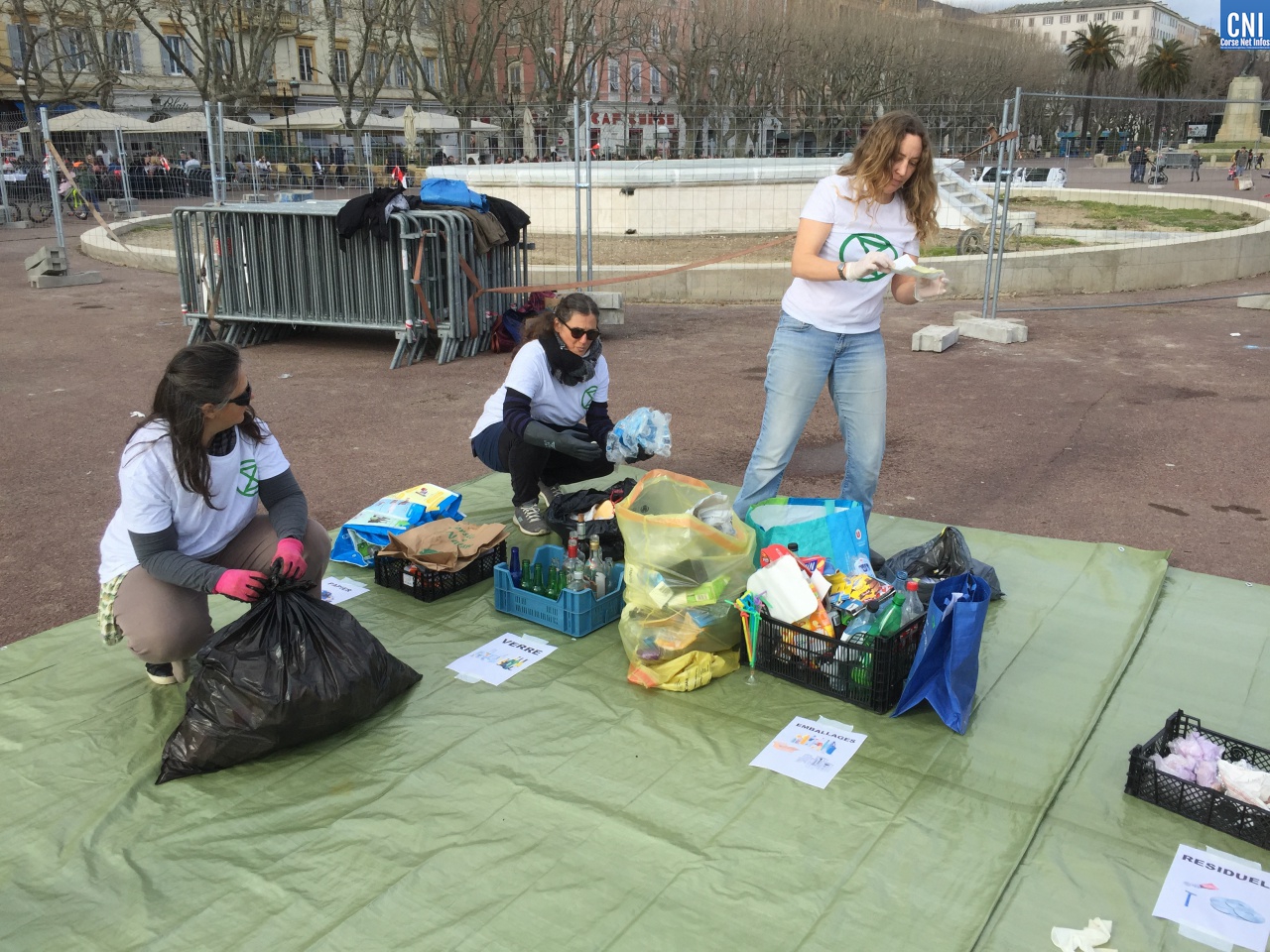 «Le but était de monter que le tri est mal fait par les gens soit par lascia corre soit peut-être aussi par manque d’information » explique l’une d’elles. « Nous avons ramassé plusieurs sacs poubelles noirs dans les rues avoisinantes et vidé leur contenu. On a pu constaté qu’à l’intérieur ceux-ci contenaient bien des restes bio dégradables mais aussi beaucoup de déchets dits recyclables que l’on doit normalement mettre dans les poubelles jaunes, vertes ou bleues : bouteilles, emballages, papiers, plastiques. Après avoir fait nous-mêmes le tri sur place, sur les 50 kg que contenaient les sacs noirs, seuls 5 étaient censés pouvoir y être jetés. Les 45 autres kg restant étaient constitués de verre, papiers, plastiques, mégots, cartons. Aujourd’hui pourtant tout est fait pour que l’on puisse trier. Les gens doivent se responsabiliser car si le tri est correctement effectué le problème des déchets disparait, on gomme les problèmes sanitaires. Le tri doit être rigoureux». Un membre du mouvement soulignait aussi les conséquences de ce mauvais tri : «On s’aperçoit en ouvrant ces sacs du gaspillage fait. Or qui dit gaspillage, dit surproduction et sur consommation. Nous on demande la décroissance de la consommation. Certains hostiles au tri argumentent que ne pas trier est source d’emplois. C’est faux et c’est exactement le contraire. Le tri crée des emplois»