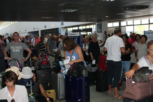 Entre temps, dans l'aérogare, les deux employées du comptoir Air France était rapidement submergées par des passagers inquiets.