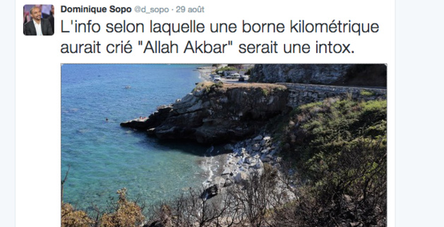 Compte tenu des propos choquants tenus sur Twitter par le Président de l'association "SOS Racisme", Monsieur Dominique Sopo, suite au décès de Charles-Antoine Casanova, à savoir la phrase : "L'info selon laquelle une borne kilométrique aurait crié "Allah Akbar" serait une intox"