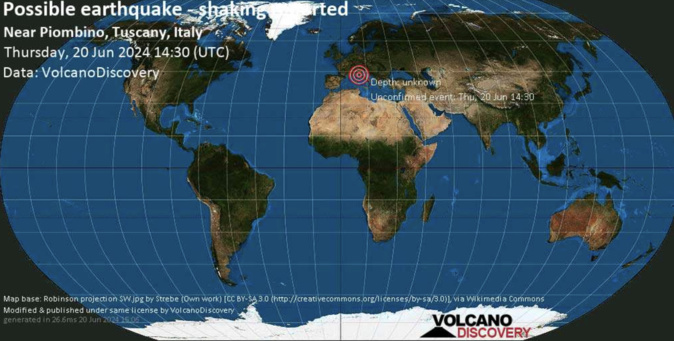 En revanche le site Volcano Discovery indique que un séisme aurait eu lieu près de Piombino, en Toscane, dans l'après-midi vers 16h30 heure locale. "Les détails du séisme (s'il en est un) sont jusqu'à présent inconnus jusqu'à ce qu'ils soient confirmés par une agence sismique, mais l'événement aurait été ressenti par de nombreuses personnes dans la région. "Euh vous avez senti la terre trembler? À Bastia 👀😳