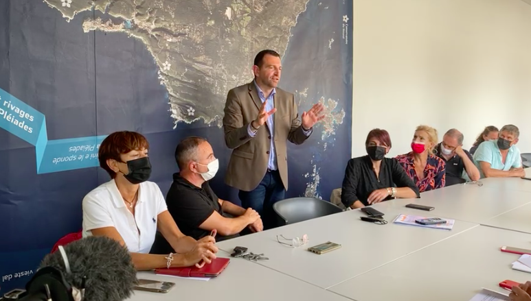 Le maire de Bonifacio a tenu une conférence de presse ce vendredi 10 septembre. Photo : Capture d'écran Facebook Mairie de Bonifacio