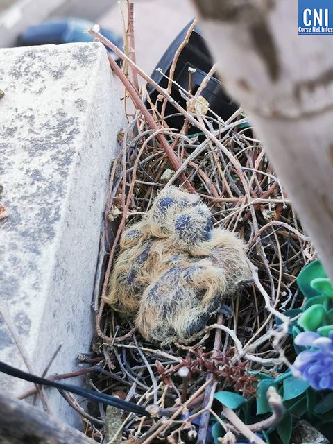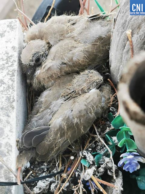 La tourterelle fait, généralement, son nid dans les haies hautes, les arbres et les arbustes, et même parfois sur des pylônes en composant avec des racines, des brindilles et des tiges, de petites plateformes où la femelle pond généralement deux œufs. Mais il est d'autres endroits où elle peut faire son nid. Sur les balcons des immeubles de nos centres-villes comme ici dans le quartier du Fango à Bastia où deux tourtereaux vont prendre bientôt leur envol. Pour ne, sans doute, plus revenir au grand dam de notre lectrice, Isabelle Duffy qui a suivi leur évolution de la couvée à l'éclosion…