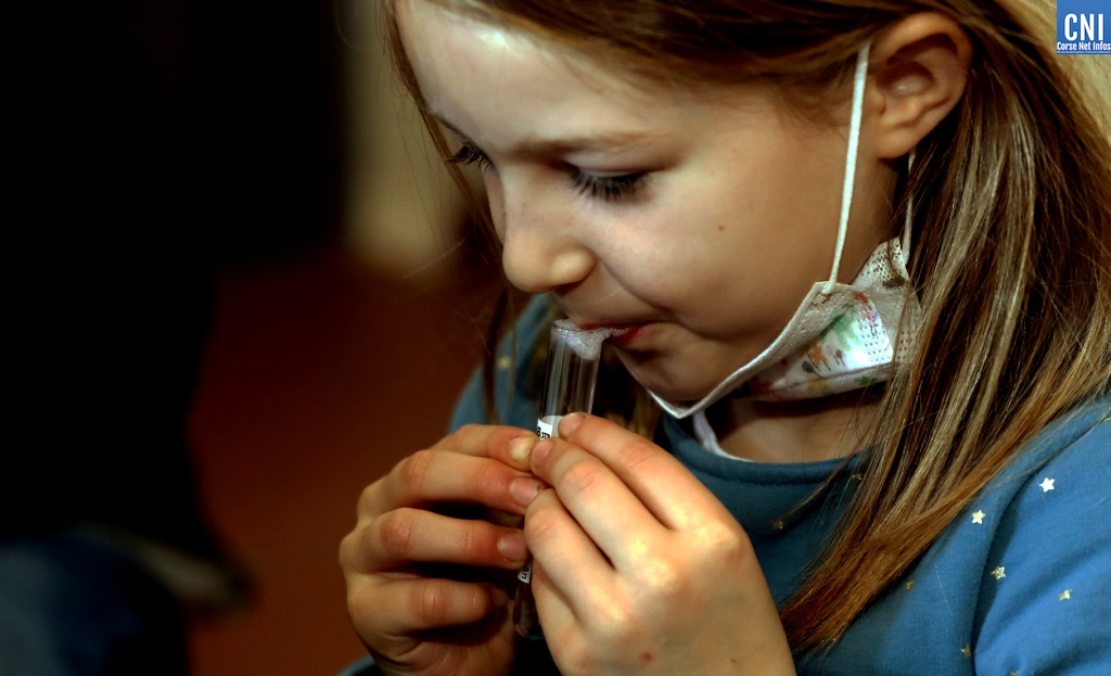 Anna, élève de l’école Forcioli-Conti à Ajaccio, est la première de Corse à réaliser un test salivaire ce jeudi 4 mars. Comme elle, soixante-dix écoliers parmi les 130 que comptent l’école ont répondu à l’appel pour cette nouvelle campagne.