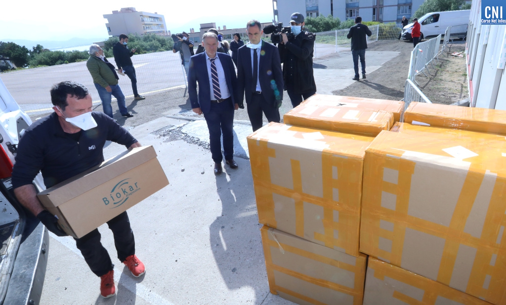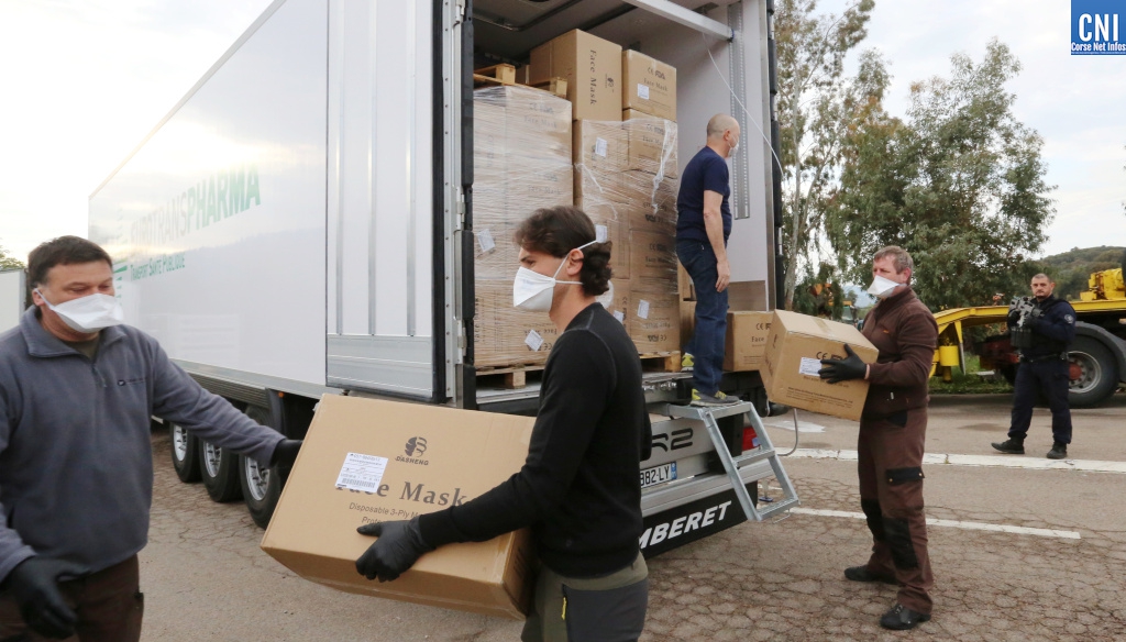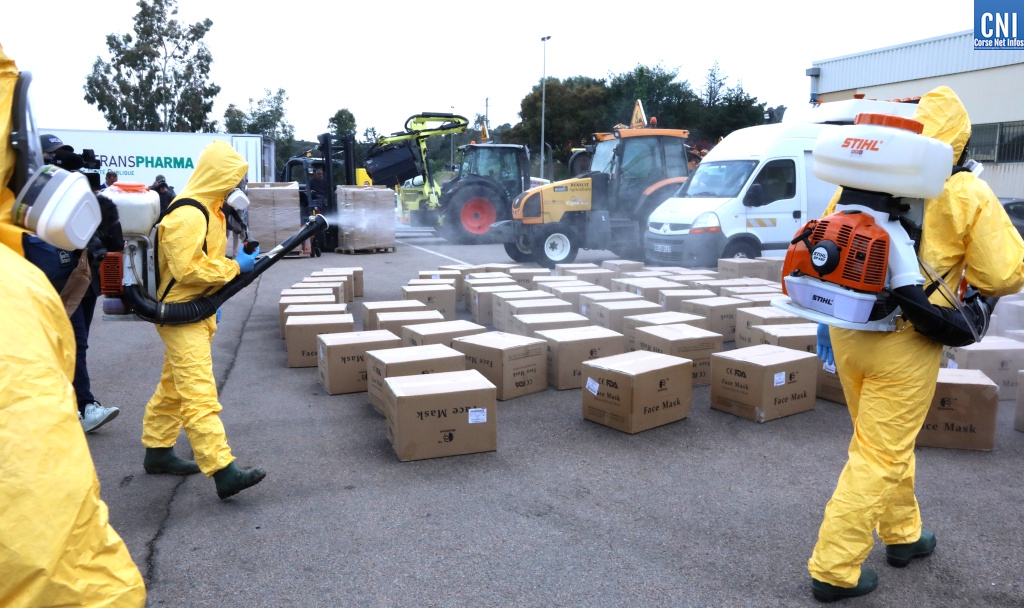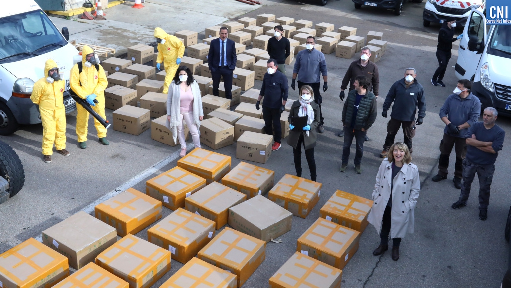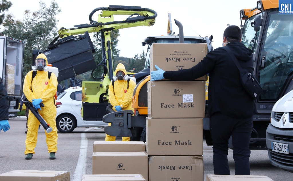 Après avoir procédé à une désinfection des cartons, les masques seront livrés dans plusieurs établissements de la région ajaccienne.