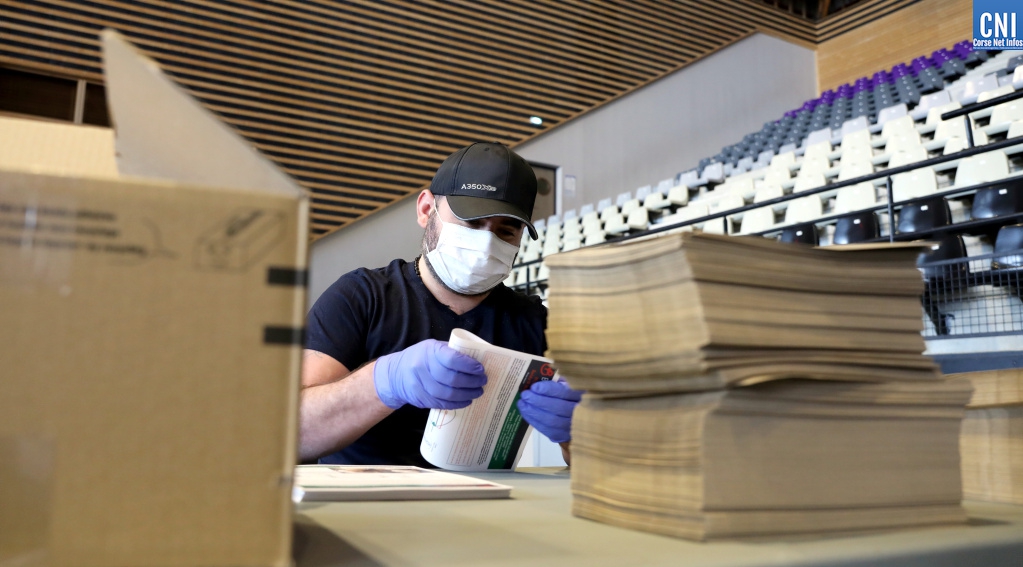 Ce samedi 2 mai au Palatinu, plus de 200 volontaires, élus et agents de la Ville d'Ajaccio et CAPA, ainsi que les femmes et les hommes de la Protection Civile, ont procédé à la mise sous pli des masques et leur notice d’utilisation.