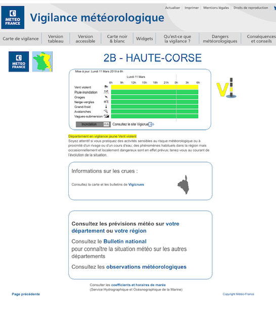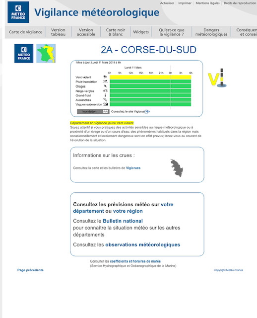 Météo France prolonge la vigilance jaune en Corse pour le paramètre vent violent jusqu'à ce mardi 12 mars à 6 heures.