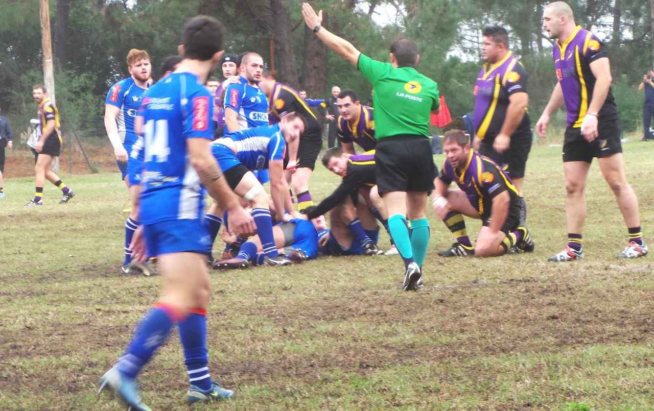 Les partenaires de Mikaël Leduc prirent alors conscience du danger et allaient pour la deuxième fois de l'après-midi à l'essai : après avoir, en effet, insisté sur le côté droit, ils envoyaient Nobili derrière la ligne du côté opposé.