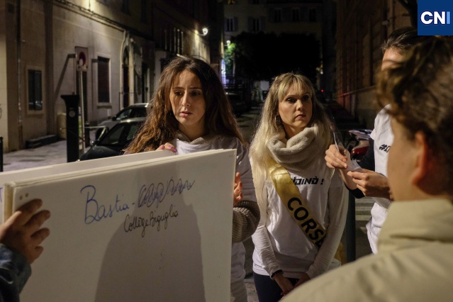 Le rendez-vous est donné ce jeudi 23 novembre, à 21 heures, devant le Lycée Jean Nicoli de Bastia. Elles sont sept, venues chacune avec leur conviction et leur parcours pour porter un message et soutenir une cause commune : dire stop aux violences intrafamiliales et faites aux femmes. Le temps de préparer la colle, de répartir les affiches et les lieux de collage, elles enfilent les t-shirts floqués « #quìdinò! » Une opération commando, comme stipulée au dos de ces chandails, pour coller, conjointement avec d'autres à travers toute l'île, 90 portraits d'hommes, de femmes et d'enfants. Des visages qui expriment autant d’émotions fortes que la colère, l’indignation, la révolte, mais aussi la peur ou la fragilité.