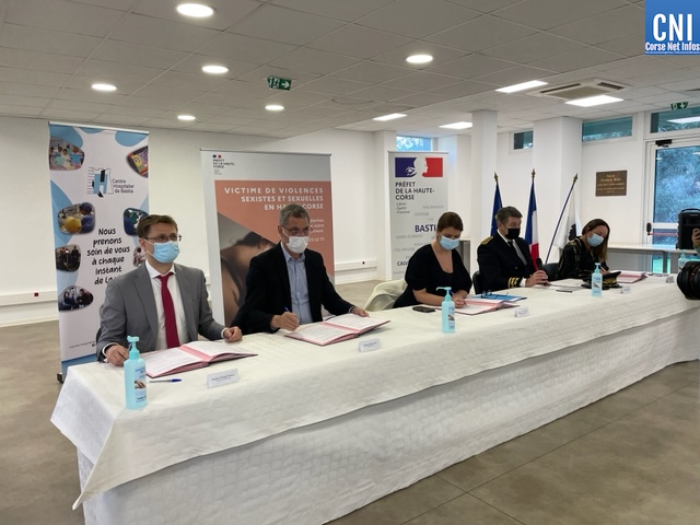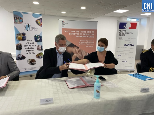 Pour faciliter l’accès à la plainte, la ministre a signé, ensuite, au centre administratif de l’hôpital de Bastia, une convention pour la mise en place du protocole de prise de plainte directement à l’hôpital, avec le maire de Bastia et président du Conseil de surveillance de l’hôpital, Pierre Savelli, du préfet, du Procureur et de la directrice adjointe du centre hospitalier, Françoise Vesperini. Elle salue également le travail mené par la Collectivité de Corse, " grâce à laquelle nous allons pouvoir cofinancer un poste d’intervenant social au commissariat de Bastia. L’accompagnement social est absolument fondamental. Je suis très heureuse que l’on puisse enfin signer ce protocole qui est le symbole de ce travail collectif ".