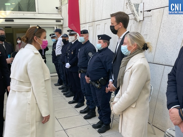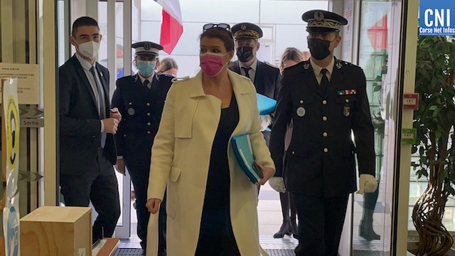 Aussi, a-t-elle consacré sa première étape, jeudi matin, au commissariat de Bastia où, accompagnée par le préfet de Haute-Corse François Ravier et par le directeur de la Direction départementale de la sécurité publique, le commissaire, Joël-Patrick Terry, elle a rencontré les policiers de la DDSP pour faire le point sur les "moyens affectés à la sécurité".