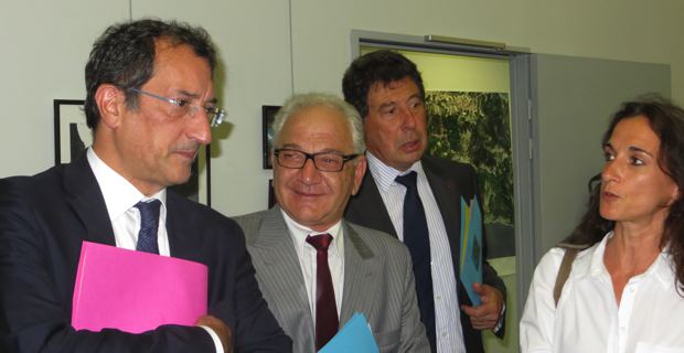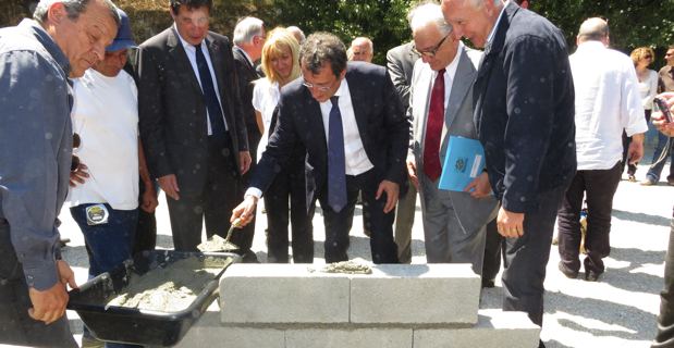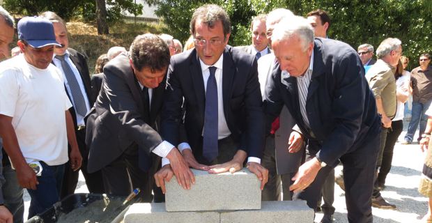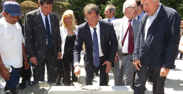 La visite ministérielle débute dès midi, comme de coutume, par un accueil républicain à la Mairie de Bastia en présence d’une grande partie de la majorité municipale. Après le déjeuner, le ministre entame, en grande partie à pied, sous un soleil de plomb, un tour d’horizon des quartiers Sud, de Lupinu à Paese Novu, ponctué de plusieurs haltes. Première halte à la Maison des quartiers Sud où lui est résumé le programme de rénovation urbaine entrepris par la ville. Quelques mètres plus bas, François Lamy pose, symboliquement, la première pierre du centre culturel des quartiers Sud qui doit être livré fin 2014. Il souligne « l’exemplarité en termes de réinsertion sociale » de ce chantier de 15 millions €, en partie financé par l’Etat, qui emploie « 10% des habitants du quartier».