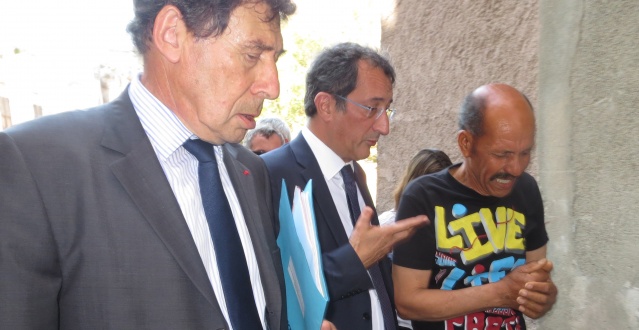Son périple bastiais s’achève sur le Vieux Port après une promenade dans le centre ancien et une traversée au pas de charge du Puntettu où l’attend le comité de quartier luttant contre le projet de démolition prévu par la Mairie. Le ministre avait, d’abord, accepté une rencontre avec le Comité de quartier, le matin même à la Préfecture. C’est finalement son directeur de cabinet qui reçoit les habitants venus lui exprimer leur désarroi. Mais la promesse de pouvoir plaider leur cause auprès du ministre lors de la visite de l’après-midi tourne court. Les porte-paroles du Comité de quartier peuvent à peine approcher un ministre cerné par une garde municipale. Ils ont juste le temps de lui remettre Pesce Anguila, le livre emblématique de l’histoire de ce plus vieux quartier de Bastia. Le ministre est arrêté quelques mètres plus tard par Mustapha, un des habitants, qui, en pleurs, lui supplie d’empêcher son expulsion de la maison dont laquelle il vit depuis 40 ans. « Vous serez indemnisé », lance Ange Rovere, le 1er adjoint. Le cortège repart jusqu’au Vieux Port. Le ministre enfui, les habitants ne cachent ni leur déception, ni leur amertume.