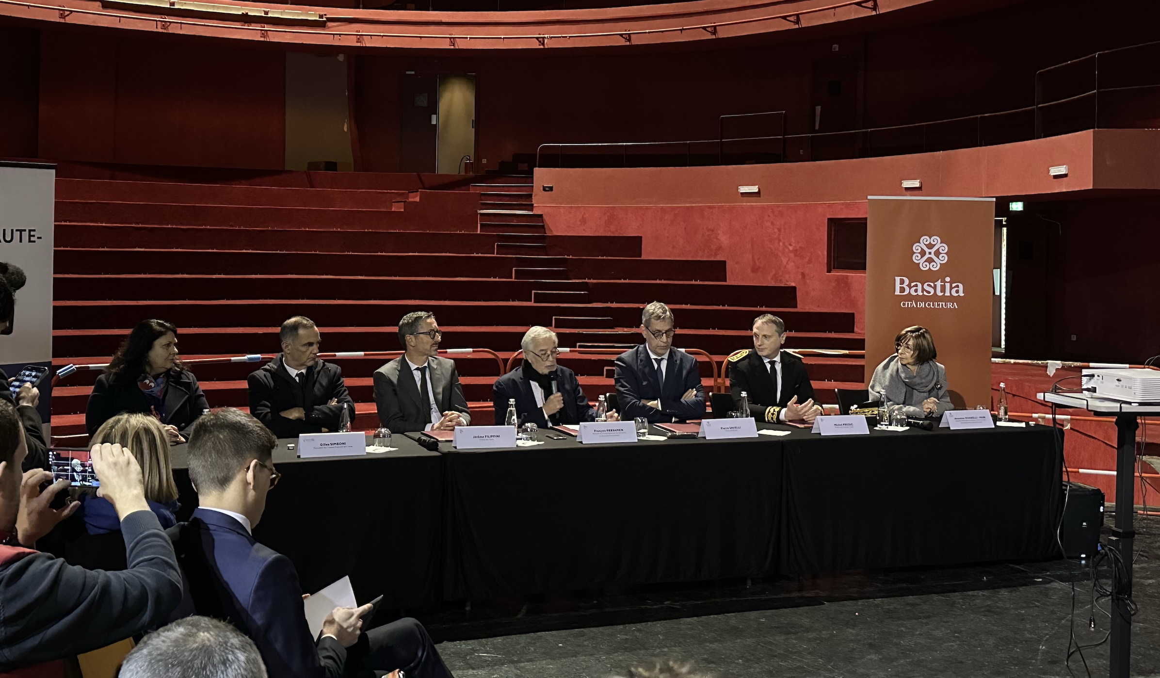 À l’issue des discours, François Rebsamen, Pierre Savelli, Gilles Simeoni, Michel Prosic, le préfet de Haute-Corse, Jérôme Filippini, le préfet de Corse, ainsi que plusieurs adjoints au maire, ont signé la convention de financement du plan de transformation et d’investissement pour la Corse. Le ministre a précisé que “l’État s’engage à hauteur de 17 millions d’euros pour la rénovation du théâtre de Bastia et du conservatoire, soit 60 % du coût du projet”. Il a ajouté : “Il est normal que l’État soutienne financièrement de tels projets. Réhabiliter le théâtre de Bastia, c’est ouvrir la ville au monde, aux arts, et à tout ce que représente la culture.”