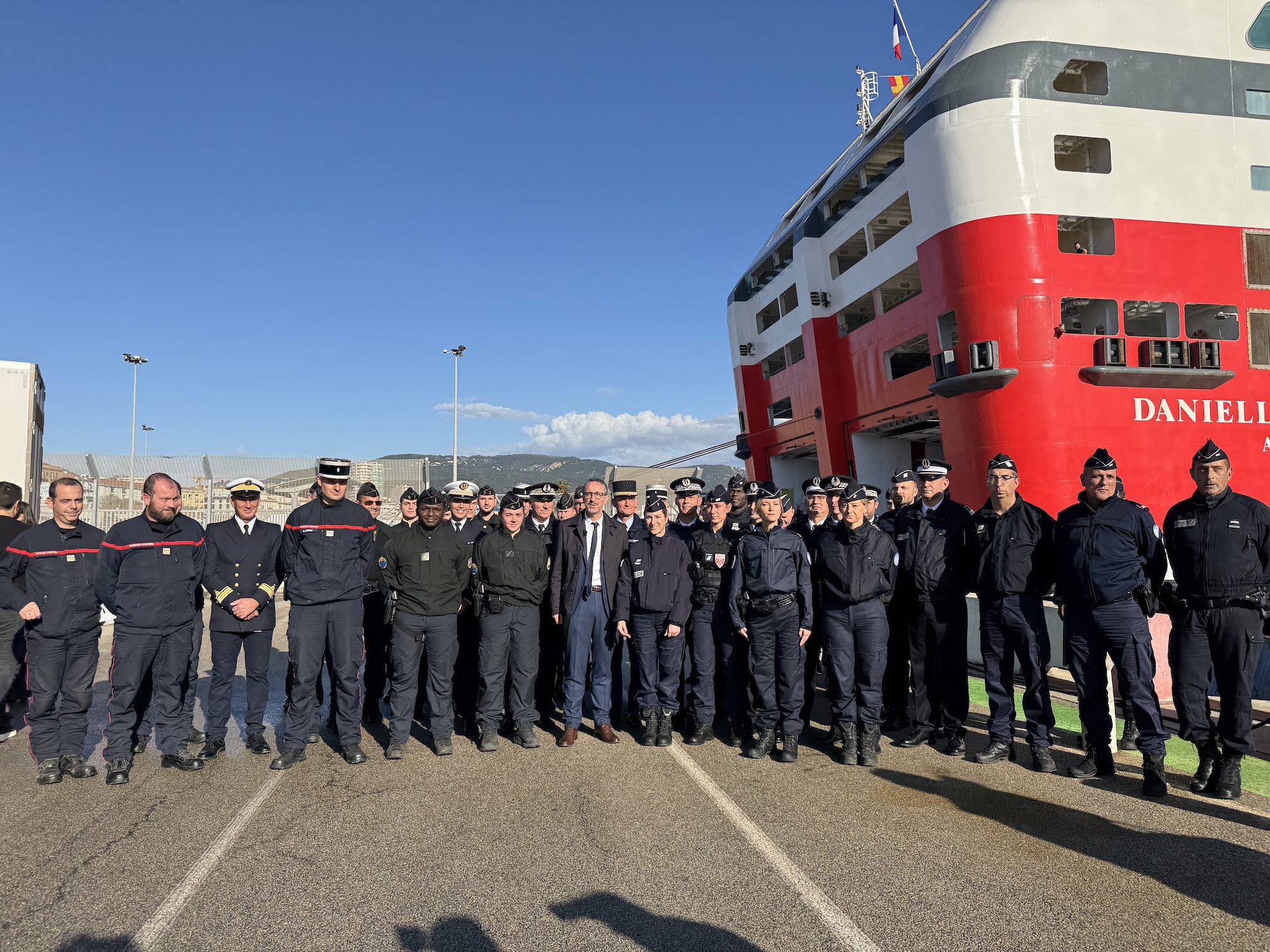« À évènement exceptionnel, mobilisation exceptionnelle ». À l’avant-veille de la venue du Pape François à Ajaccio, le préfet de Corse, Jérôme Filippini, a passé en revue les forces de sécurité arrivées pour l’occasion depuis le continent, ce vendredi matin sur le port de commerce. En plus des quelques « 1000 effectifs des services de police, de gendarmerie, des sapeurs-pompiers de Corse » mobilisées sur l’évènement il a indiqué que ce sont « 2200 personnes qui viennent en renfort depuis l’échelon national ». « Ce sont des pompiers, policiers, gendarmes, militaires de la sécurité civile, et militaires des forces armées qui viennent nous renforcer sur la sureté maritime et la sureté aérienne », a-t-il détaillé en précisant que les « unités de forces mobiles de la gendarmerie sont notamment venues de Metz et de Lille » quand les quelques 800 policiers qui se sont portés volontaires pour venir sur l’évènement arrivent « de toute la zone sud, de Cahors jusqu’aux Alpes de Haute-Provence ». Un dispositif inédit « pour aider à ce que la fête soit belle », a souligné le préfet en saluant la « marque d’une solidarité nationale exceptionnelle pour cet évènement ».
