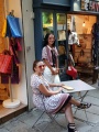 Dans la rue Clemenceau aussi on retiendra cet ensemble porté par une jeune fille à la boutique "Benoa" ou encore cette image de deux mannequins autour d'une table bistrot devant la boutique "Intemporel" sans oublier la boutique "Allure et bien d'autres " comme "Bella vista" ou encore "Batik" au "Grand-Large...