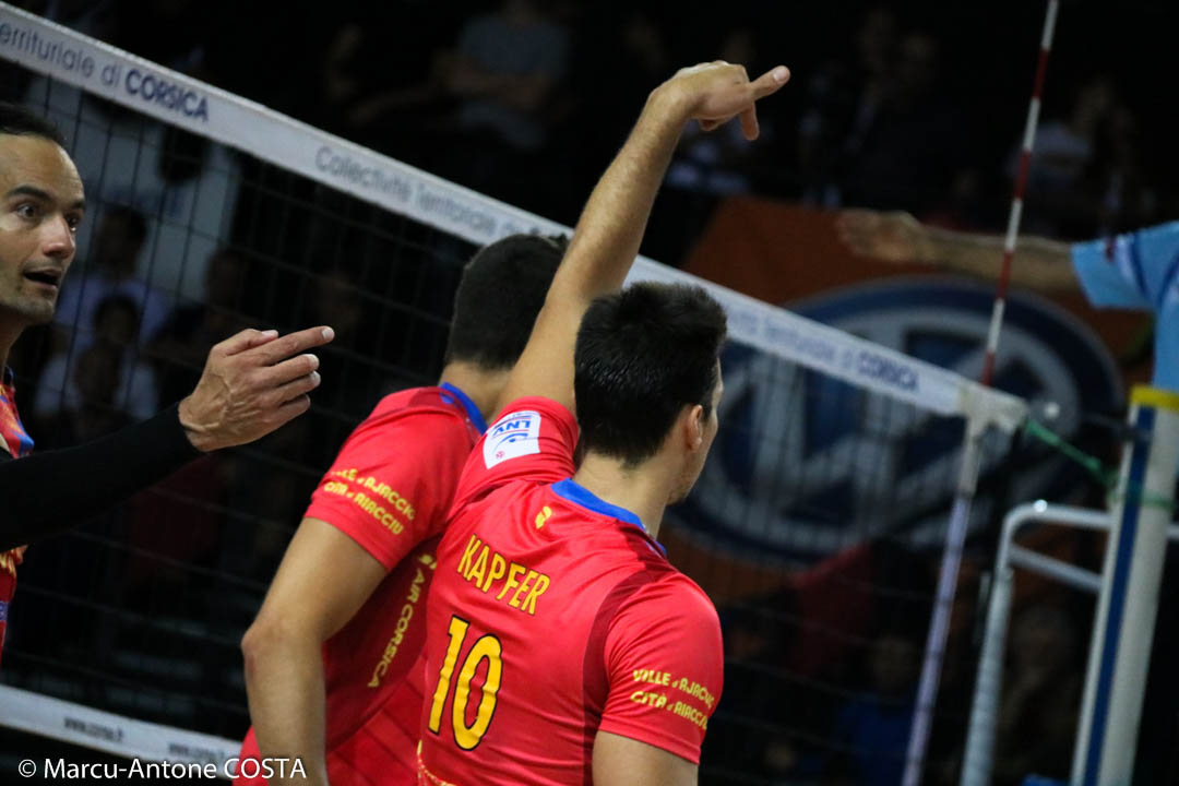 Le second set démarrait comme son précédent, avec une équipe héraultaise bien construite et stable dans son jeu. Du côté ajaccien, la stratégie mise en place par Frédéric Ferrandez semblait bien fonctionner (8-7 ... 16-14). Malgré un retour au score grâce à Rossard, Sète se laissait légèrement dominer notamment par le très bon travail de Kapfer et Andreï, ce dernier offrant le point de set sur un très beau contre (25-23).