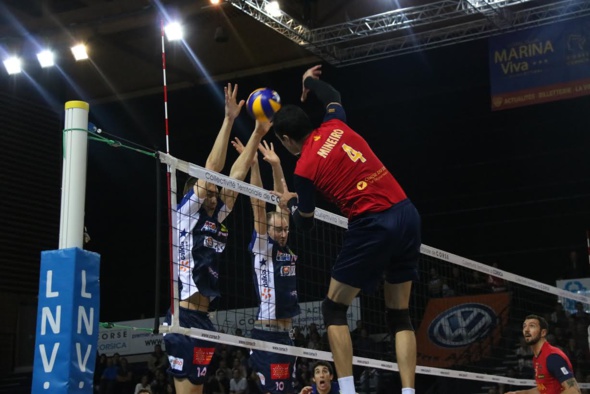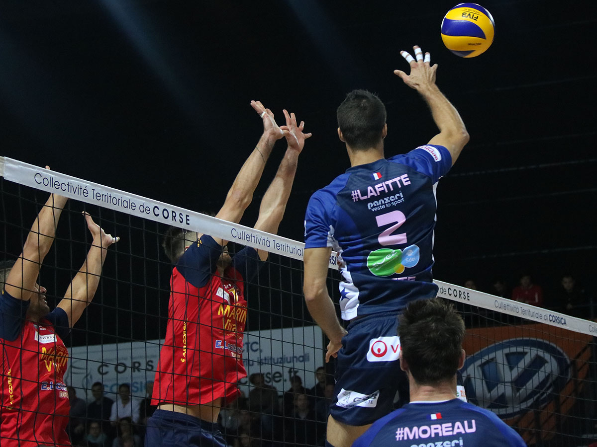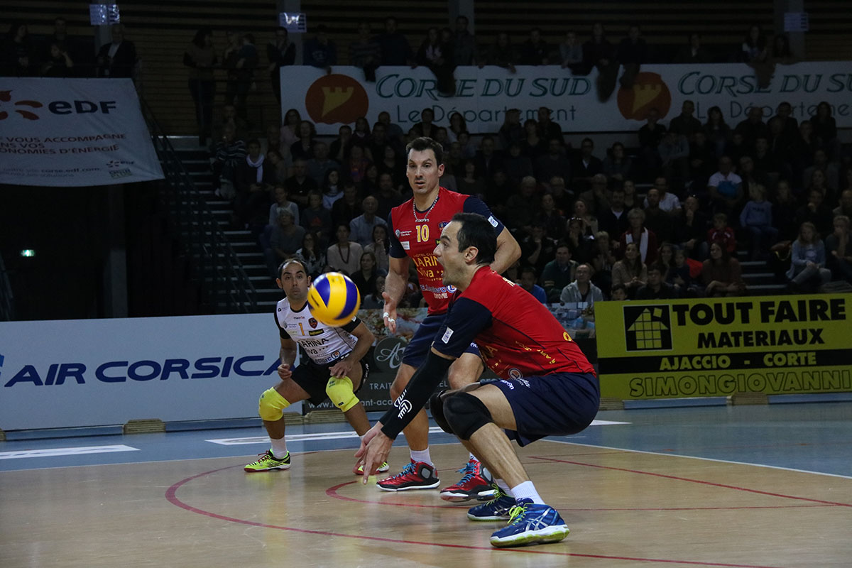 Dès le premier set, les deux équipes se testaient en se rendant quasiment coup pour coup les points. Se laissant légèrement déborder au premier temps-mort (6 - 8 pour l'équipe de Sète), un Léo Mineiro en grande forme ce dimanche (25 points dans le match) allait permettre aux rouges et bleus d'inverser la balance en creusant l'écart (16-10) avant le deuxième temps-mort. Cet arrêt de jeu, sans doute bienvenue pour les hommes de Patrick Duflos, coupait légèrement les Ajacciens sur leur lancée. Malgré une remontée à deux points d'écart, notamment grâce à Marien Moreau (22-20), les gaziers s'imposaient 25-21 au terme de ce premier temps de jeu.