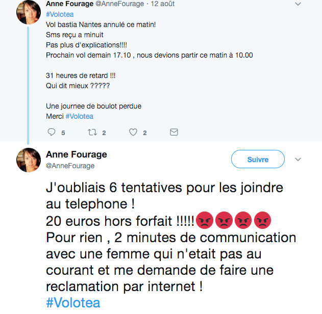 Dépassée par la pagaille, la compagnie espagnole s’est expliquée dans le même communiqué : « Mardi dernier, le 31 juillet, Volotea a souffert d'un problème technique d’un avion qui a nécessité le changement d’une pièce. Malheureusement, cette année, la demande pour cette pièce est extrêmement forte et malgré l'utilisation de tous les canaux disponibles, huit jours ont été nécessaire pour acheter cette pièce et deux autres jours pour l'envoyer à Nantes. Volotea s'attend à ce que l'avion soit remis en service ce dimanche après-midi 12 août ou tôt lundi matin 13 août ». La situation, déjà tendue, s’est encore plus compliquée quand le jeudi 9 août, Volotea a subi un deuxième problème dans un autre avion. « Cela n'aurait pas été le cas avec un délai de livraison standard de la pièce de rechange mentionnée. Volotea dispose habituellement des ressources de secours suffisantes, mais n'a pas été en mesure d'exploiter correctement et complètement son programme commercial à Nantes en raison de ces événements qui ont coïncidé en même temps sur ces deux avions. Il est vraiment regrettable et embarrassant d'avoir eu à faire face à ces deux situations au même moment, en cette période de pointe et dépassant les normes de capacité de réserve de l'industrie. Volotea n'a jamais connu de situation aussi longue auparavant, pendant autant de jours. Volotea alloue un A319 de secours pour 12 A319 en service commercial ».