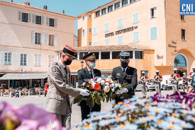 La seconde gerbe était déposée par Florent Farge, sous-préfet de Calvi, le Colonel Christophe Tritscher, chef de corps du 2e REP de Calvi et l'adjudant chef de Gendarmerie Richard.