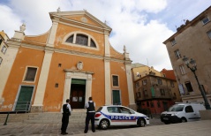 La police postée devant la cathédrale d'Ajaccio. (2)