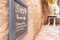 Et puis, apposé directement sur le mur en pierres cette pancartes fléchée : « Lever le crochet, découvrez les trésors cachés de l'ancien chemin de ronde du mur d'enceinte de la basse ville ».