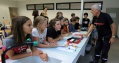 À dire vrai, on est rentré, de suite, dans le vif du sujet. Après s’être entretenues avec les responsables de l’Etablissement, Josiane Chevalier et Julie Benetti ont assisté à deux séances. Dans la première salle, un atelier dédié aux premiers secours. L’utilisation d’un défibrillateur, les gestes à prodiguer en cas d’urgence (avec exemple sur un mannequin) ont été présentés aux élèves par le Lieutenant Dominique Murraccioli et son équipe (SIS2A). « Nous avons montré les gestes de base, explique ce dernier, ce sont les gestes qui sauvent et les bases du secourisme à travers des modules. Savoir donner l’alerte et faire les premiers gestes en cas d’urgence. »