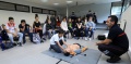 La préfète et la rectrice de Corse assistant à une démonstration de gestes de premier secours